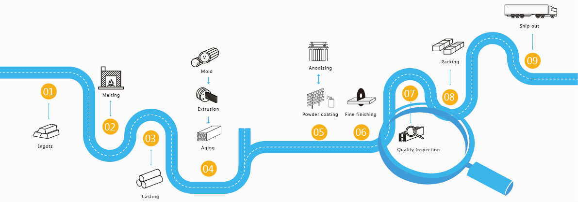 Antaisolar Posee fábrica con cadena de producción de aluminio completa de la fusión, extrusión, anodización, revestimiento en polvo, acabado fino para embalaje y selección T6 Tratamiento térmico para garantizar nuestros perfiles de aluminio con mayor resistencia a la tracción y dureza.