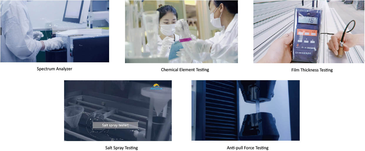 a garantía de calidad Sistema para antisoisolar Los productos de aluminio consisten en equipos de prueba avanzados, excelentes inspectores y exhaustivos QC Administración, incluido el analizador de espectro, pruebas de elementos químicos, anti-Pull Pruebas de fuerza, pruebas de espesor de película y spray sal Pruebas.