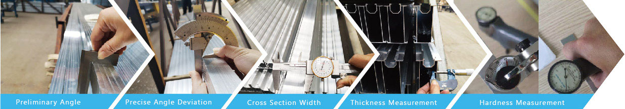 inspección completa del proceso de la materia prima al producto terminado, que incluye la sección tamaño, grosor, torsión, doblado, ángulo, calidad de la superficie, etc.